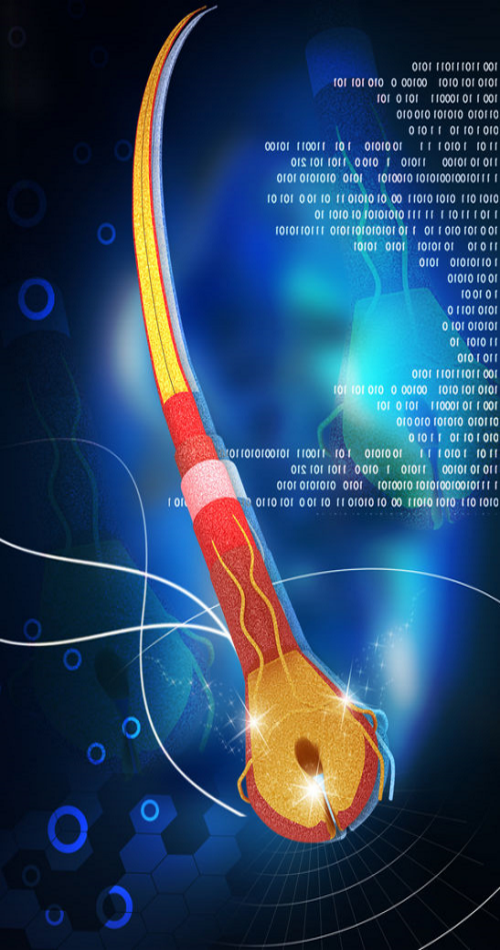 The arrector pili muscle reacts instantly to a systems shock and fear, causing the hair to ‘stand on end’. The arrector pili muscle also relaxes when the system is calm. In addition its ‘sensing’ abilities have also been associated with the forewarning of impending danger. The arrector pili muscle also expands and contracts when the system is over heated or cooled. Therefore the root bulb stores the epigenetic resonance information as it is connected to the arrector pili muscle.