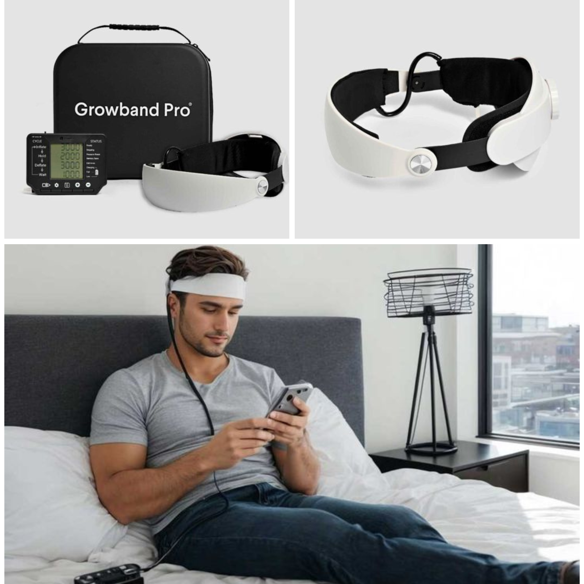 Restore natural hair growth with the Growband. The world's first, fully automated scalp massager designed to reverse male pattern hair loss without side effects.